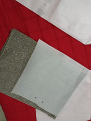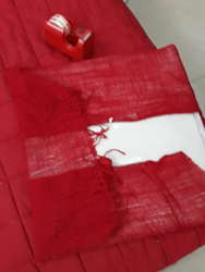 Las medí y recorté de modo tal que se ajustaran a la base de las cajas. Luego las rellené con restos de telas desechadas por una fábrica de cortinas (del mismo conjunto de catálogos que recuperé para el sofá de exteriores) y las cerré con grampas. Luego dividí en tres una vieja chalina roja que ya no usaba, y con esos fragmentos envolví los –ahora sí- almohadones.
